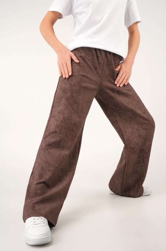 Детские брюки с эффектом варёнка для девочки подростка добавят образу элегантности и свободы. Мягкий хлопковый трикотаж с потертой фактурой добавляет образу оригинальности. Брюки шоколадного цвета станут стильным акцентом. ; Преимущества:; — плотный футер двухнитка с добавлением лайкры (240 г-м2);; — приятный на ощупь трикотажный хлопок;; — свободный прямой крой и широкие штанины;; — высокая посадка и удобный пояс на резинке;; — функциональные карманы.; Широкие штаны палаццо подойдут для физкультуры в школе, создавая аккуратный и стильный образ. Брюки с вареным эффектом идеальны на каждый день.; Бренд Happyfox ; Серия: Happyfox: Винтаж ; Страна: Россия ; Состав: хлопок 74%, полиэстер 21%, лайкра 5% ; Материал: Футер двухнитка ; Плотность ткани: 240 г-м2