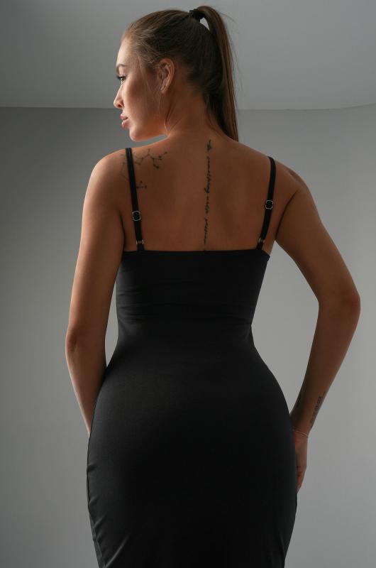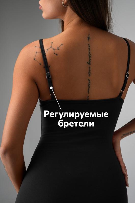 Женское облегающее платье, которое говорит само за себя: соблазнительное, женственное и готовое к самому жаркому лету. Трикотажное платье-майка в стиле скимс — находка для тех, кто обожает сочетание комфорта и красоты. Утягивающий силуэт делает его любимчиком в списке надеть сразу.; Трикотаж мягко облегает тело, ведь в составе — дышащий хлопок с добавлением лайкры. Кулирная гладь прекрасно тянется, эффектно подчёркивая изгибы. ; Благодаря двухслойной ткани на груди платье не просвечивает. Длина миди визуально вытягивает силуэт, а разрезы по бокам добавляют движения и лёгкой дерзости. Регулируемые бретели позволяют подстроить посадку под особенности фигуры. Однотонное черное платье станет основой классных образов.; Летнее платье в обтяжку подойдёт для прогулок. Обтягивающее платье для женщин идеально для свиданий.; Модель Анфиса, ее рост 170, параметры: 88-67-97. На ней размер 44.; Бренд Happyfox ; Страна: Узбекистан ; Состав: 92% хлопок, 8% эластан ; Материал: Кулирная гладь ; Плотность ткани: 190 г-м2