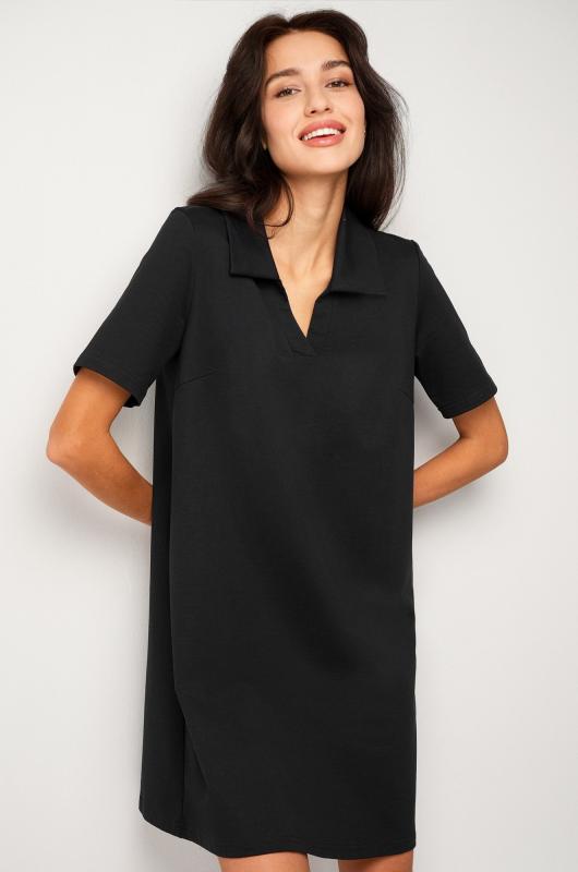 Женское платье-поло — это универсальный элемент гардероба, сочетающий в себе комфорт и стиль. Трикотажное платье для женщин подойдет прогулок, отдыха и повседневных дел.; Преимущества:; — однотонное платье поло выполнено из хлопкового трикотажа футер двухнитка (240 г-м2), который дышит и приятен к телу;; — хлопковое платье хорошо сохраняет форму;; — фасон мини подчеркивает женственность и придает образу легкость;; — короткое платье-поло с отложным воротником смотрится стильно;; — свободный силуэт не сковывает движений.; Черное платье — прекрасное решение для образов в спортивном стиле.; Бренд Happyfox ; Страна: Россия ; Состав: 74% хлопок, 21% полиэстер, 5% лайкра ; Материал: Футер двухнитка ; Плотность ткани: 240 г-м2