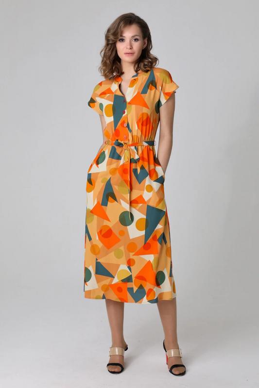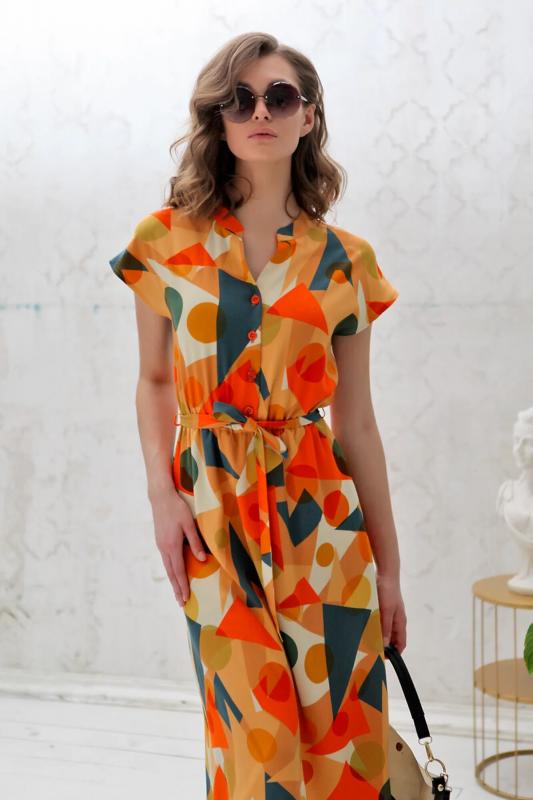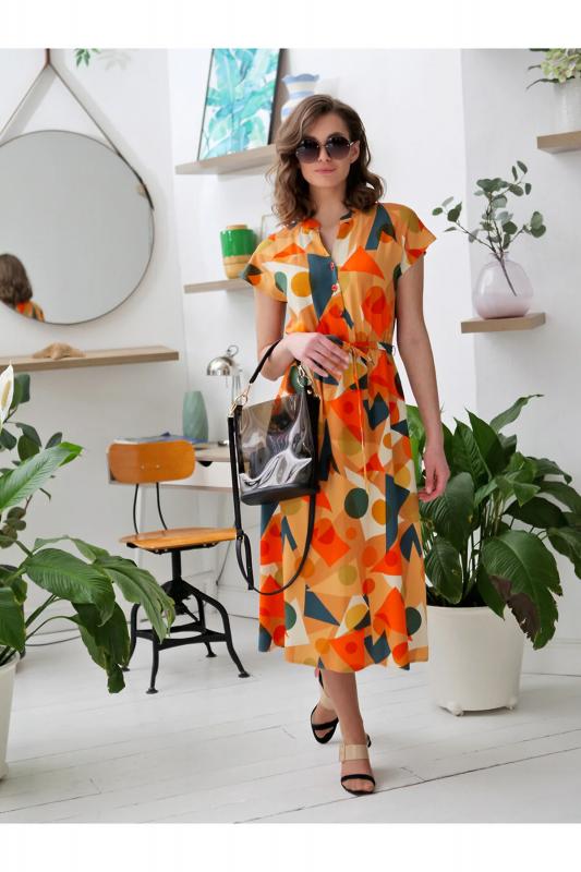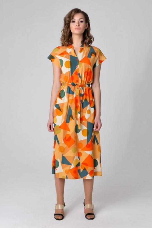 Летнее платье-миди с короткими рукавами.