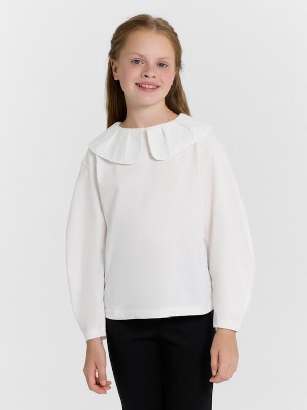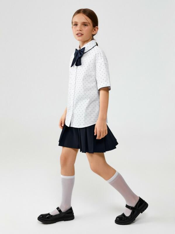 Идеальный вариант на 1 сентября и для повседневной носки! Эта текстильная блузка сочетает нарядный дизайн и комфорт для учебы.