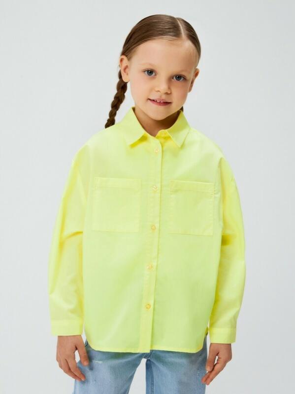 Джинсовая рубашка для девочки. Свободная рубашка прямого кроя с классическим отложным воротником и спущенным плечом подарит ребёнку комфорт и не будет стеснять его движений. Модель застёгивается на пуговицы по переду. По низу рукавов манжеты на пуговицах. Спереди слева удобный накладной карман для мелочей. Фигурная линия низа, кокетки по переду и спинке придают изысканности. Изделие лаконичного дизайна, без принта. Модель неприхотлива в уходе. В составе ткани 100% высококачественного хлопка — рубашка мягкая и воздухопроницаемая. Изделие выполнено в джинсовом синем цвете с актуальным эффектом мягкой варки garment wash. Рубашка легко сочетается с различными брюками, джинсами, легинсами. Размерная линейка: 3 (98)