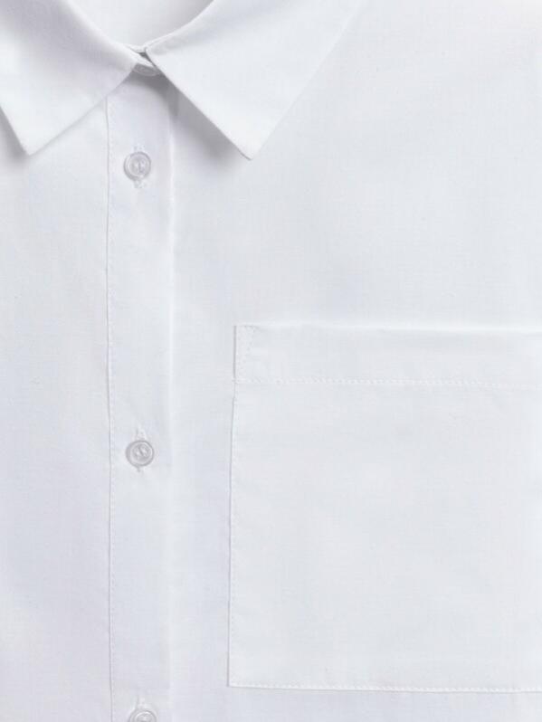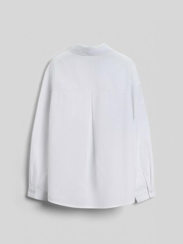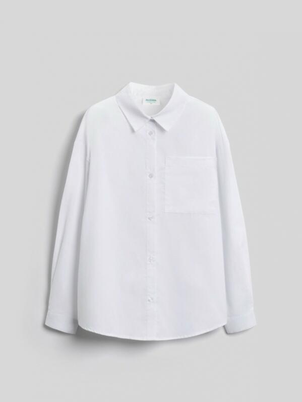 Удлиненная свободная блузка с большими карманами с клапанами на груди. Хлопковая базовая блузка белого цвета с длинным широким рукавом с манжетами застегивается на пуговицы. Отложной воротник с застежкой под горло. Легкая красивая блузка из плотной качественной ткани, которая проста в уходе, хорошо держит форму, идеальна для повседневной носки на каждый день. Дополнительный аксессуар - галстук. Характеристики:Ткань:Костюмная ткань: 79%полиэстер, 18% Вискоза 3%спандексПроизводитель: batik
