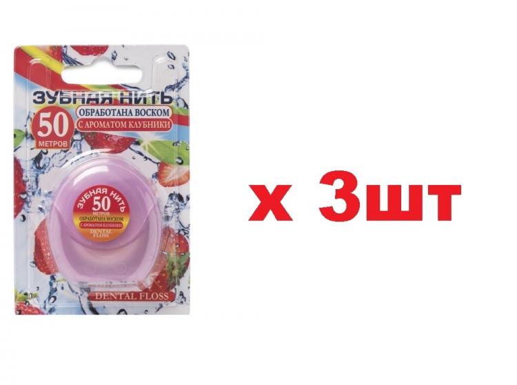 Dental floss Зубная нить 50м с ароматом клубники 3шт/