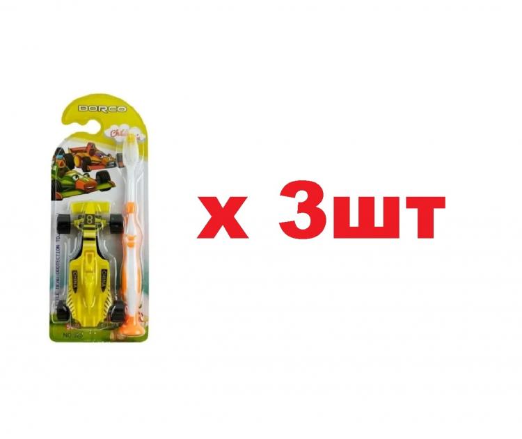 Dorco набор №525 детская зубная щетка с игрушкой Машина 3шт/