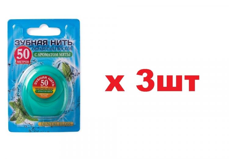 Dental floss Зубная нить 50м с ароматом мяты 3шт/