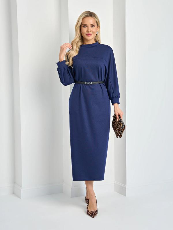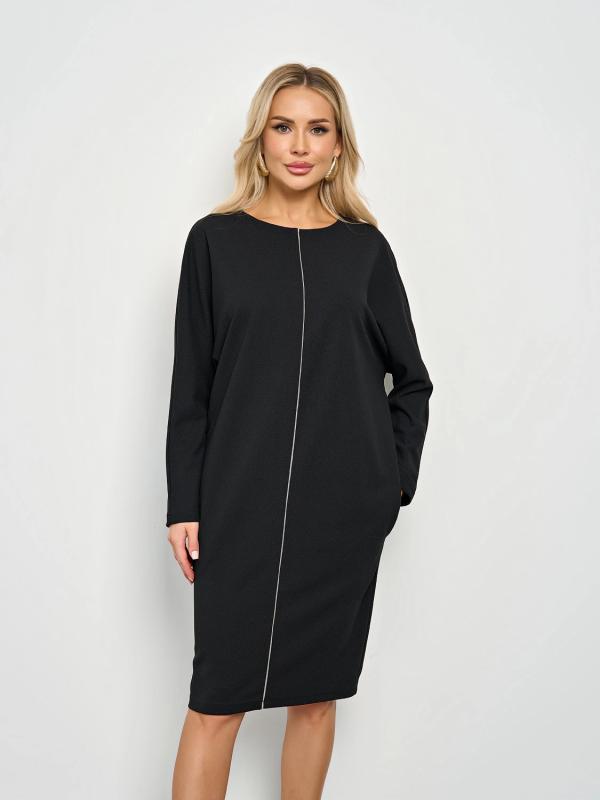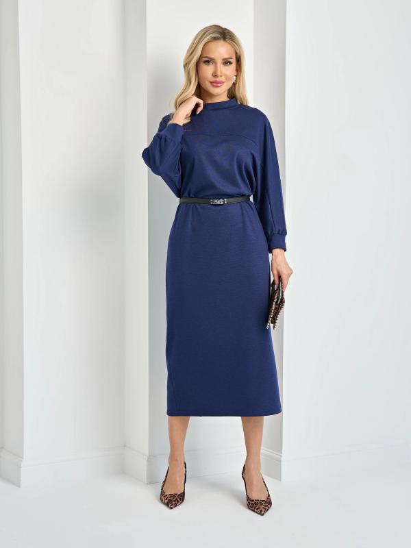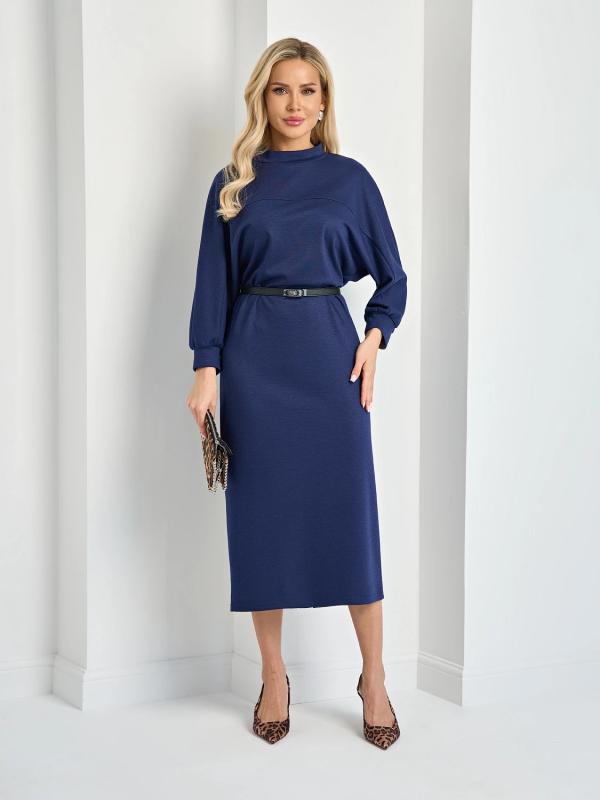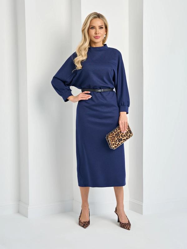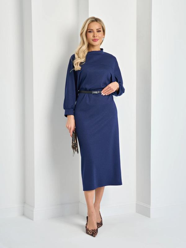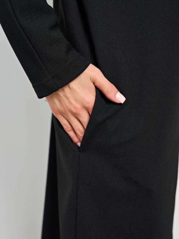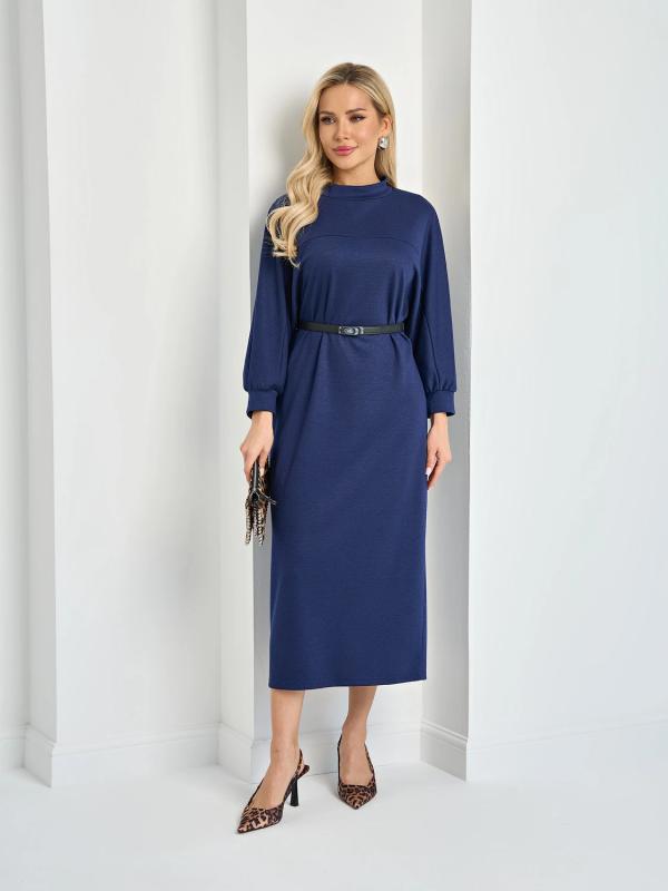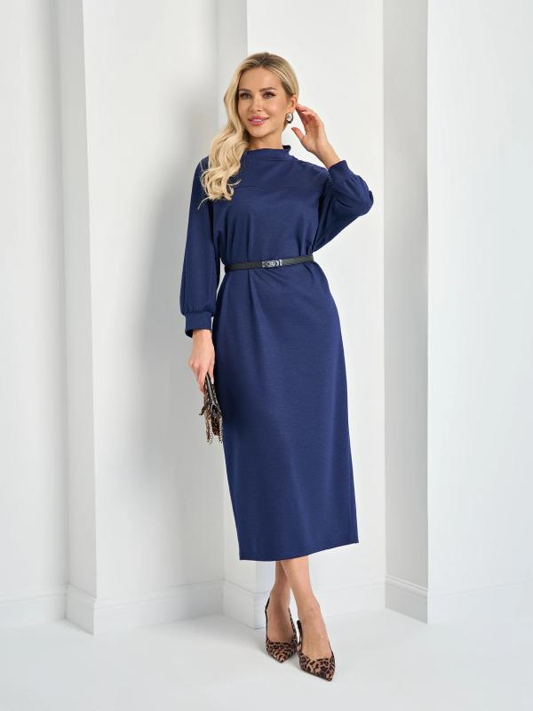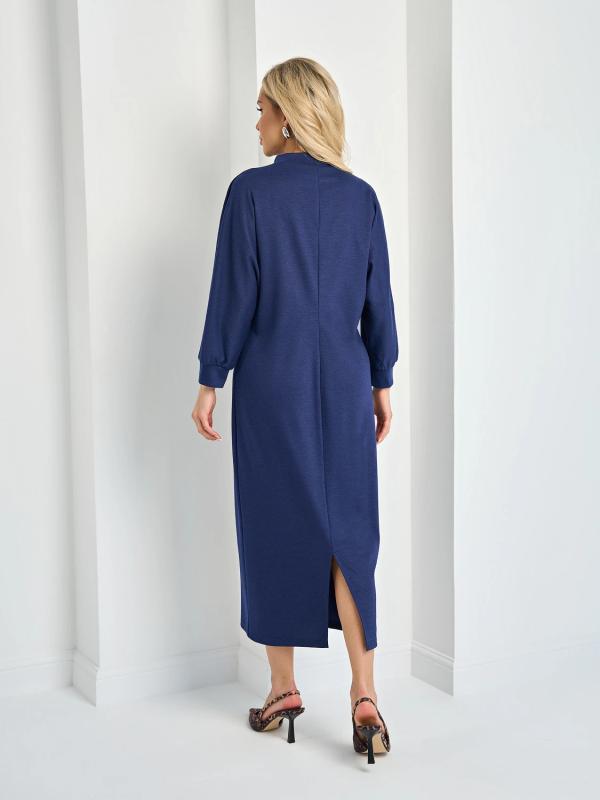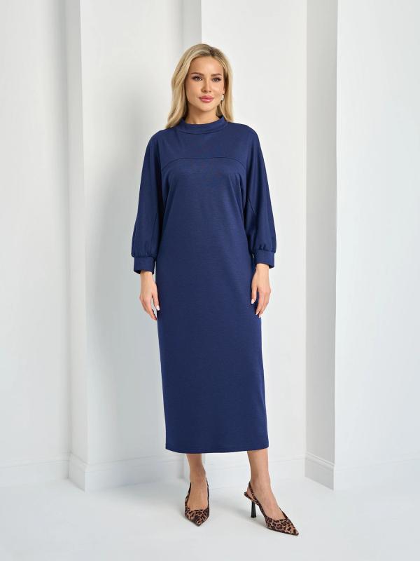 Мягкое трикотажное платье с воротником стойкой прямого кроя.