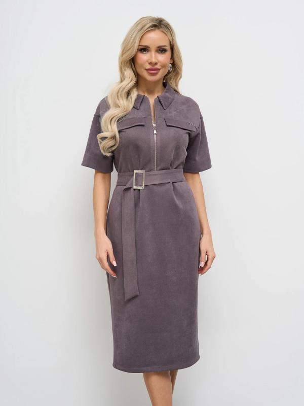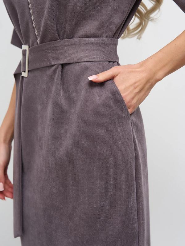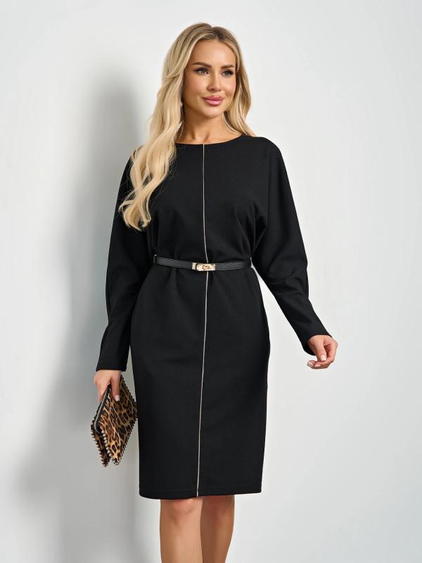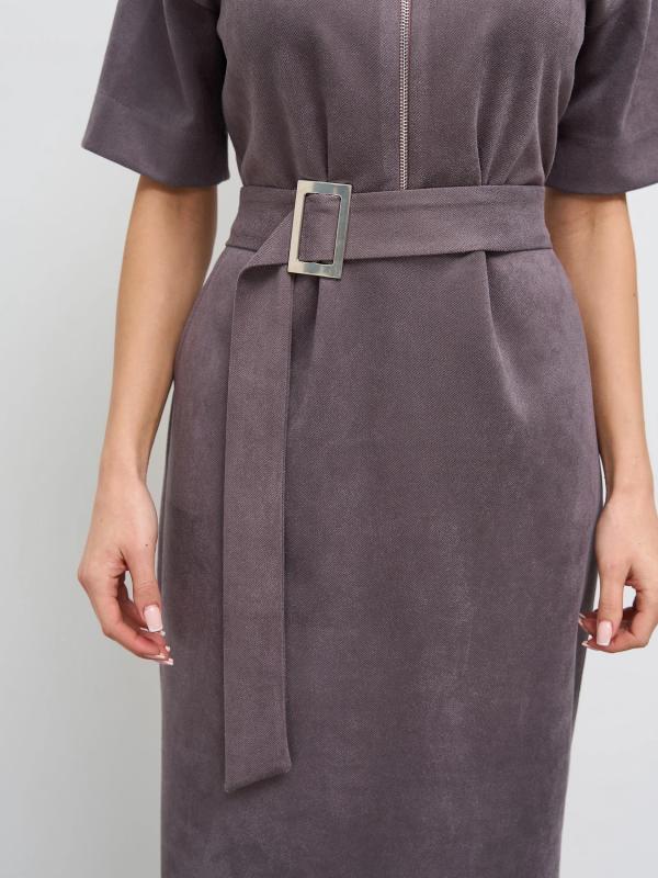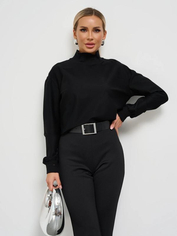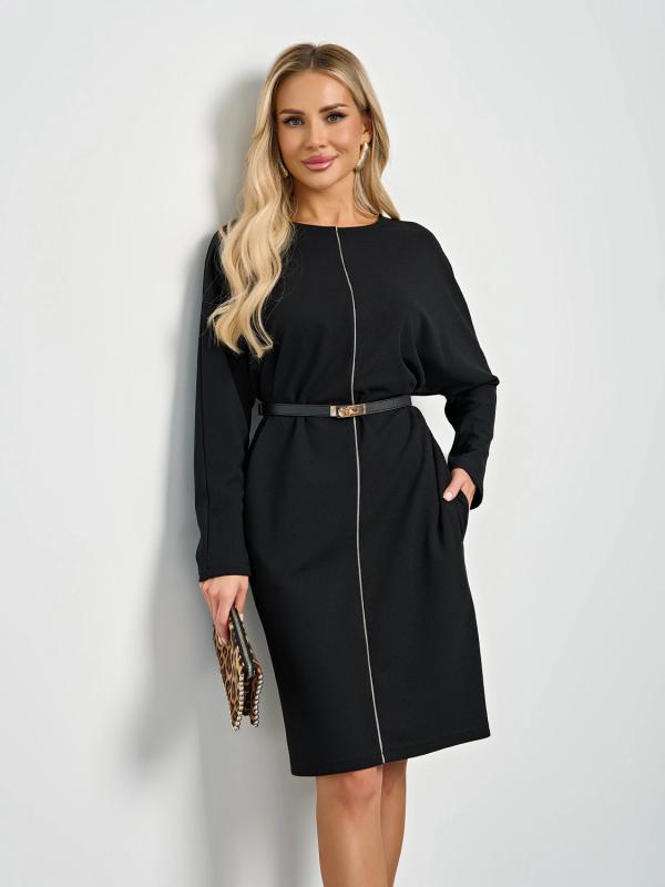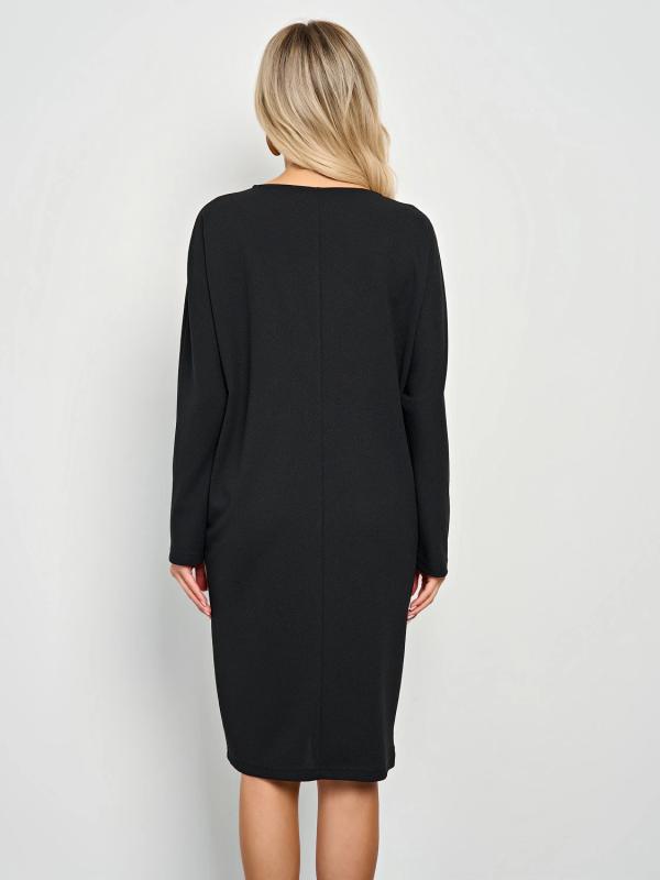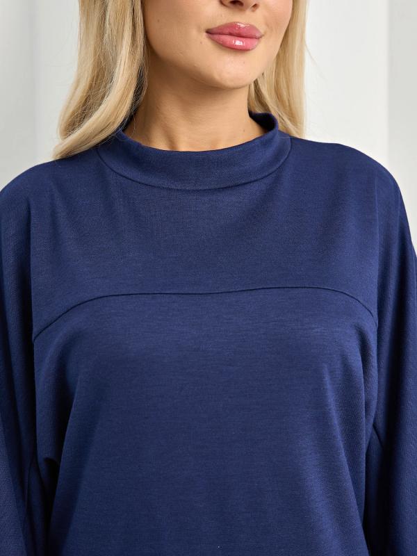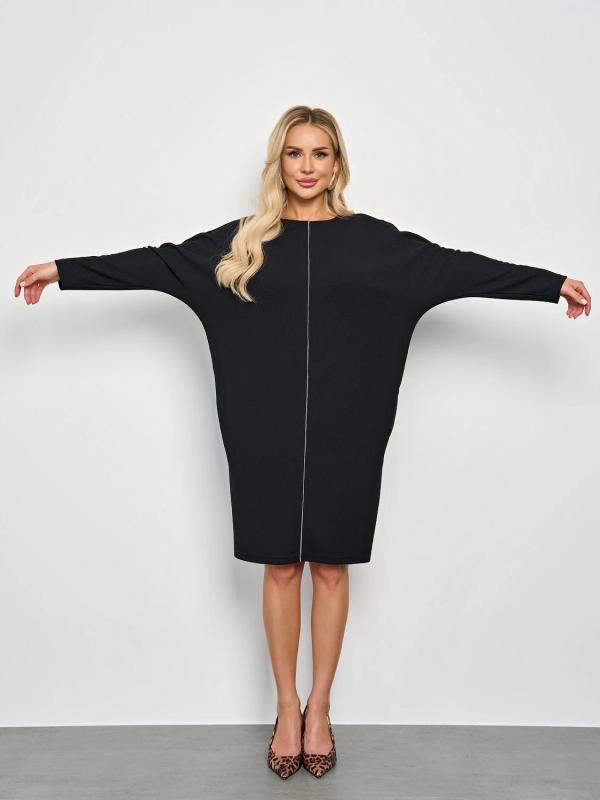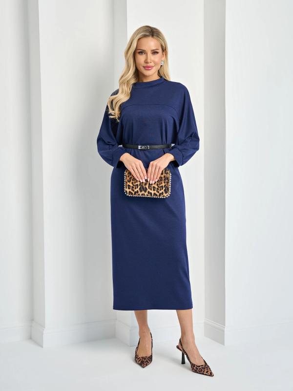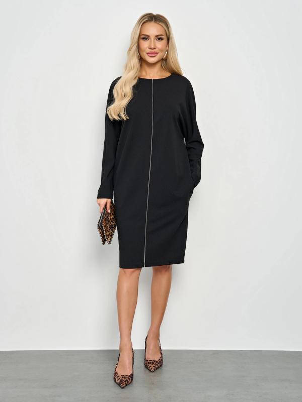 Мягкое трикотажное платье с воротником стойкой прямого кроя.