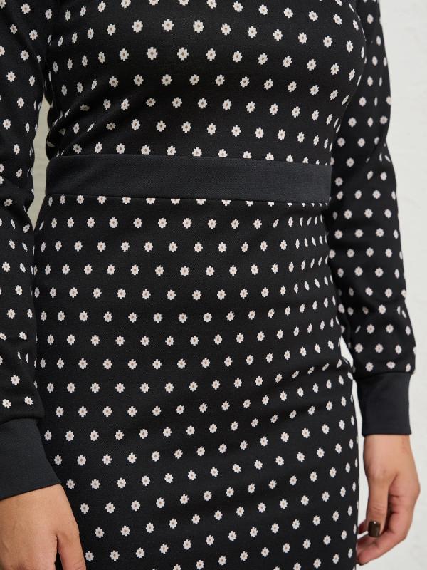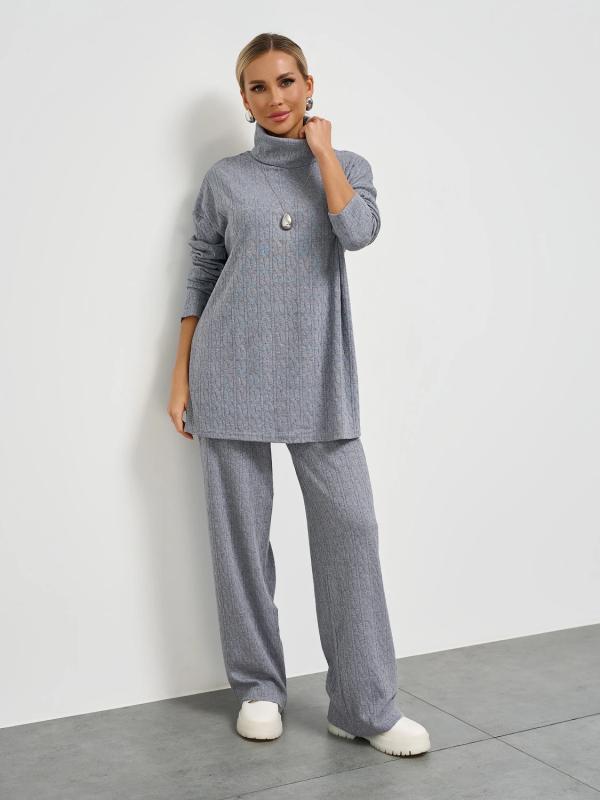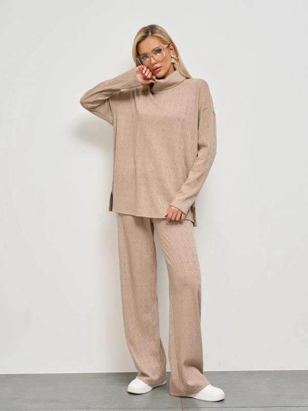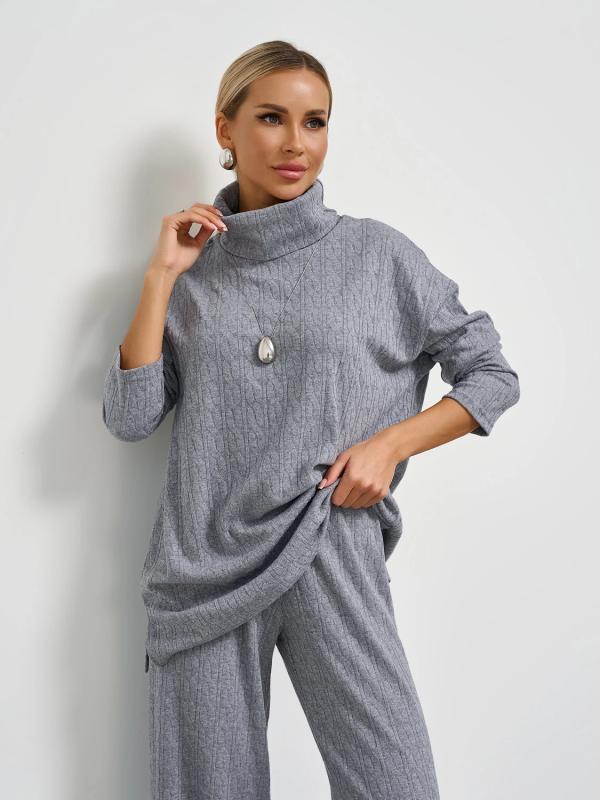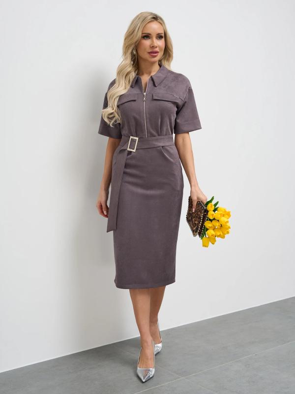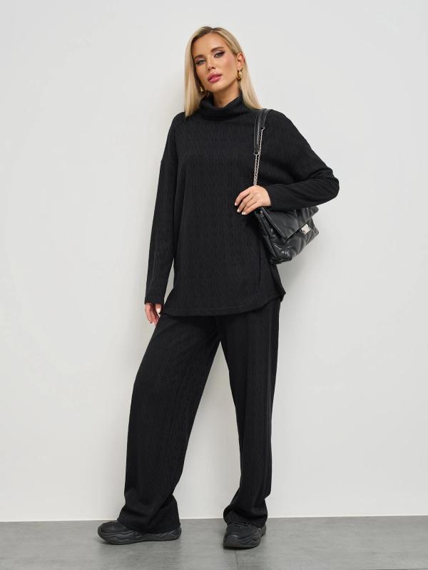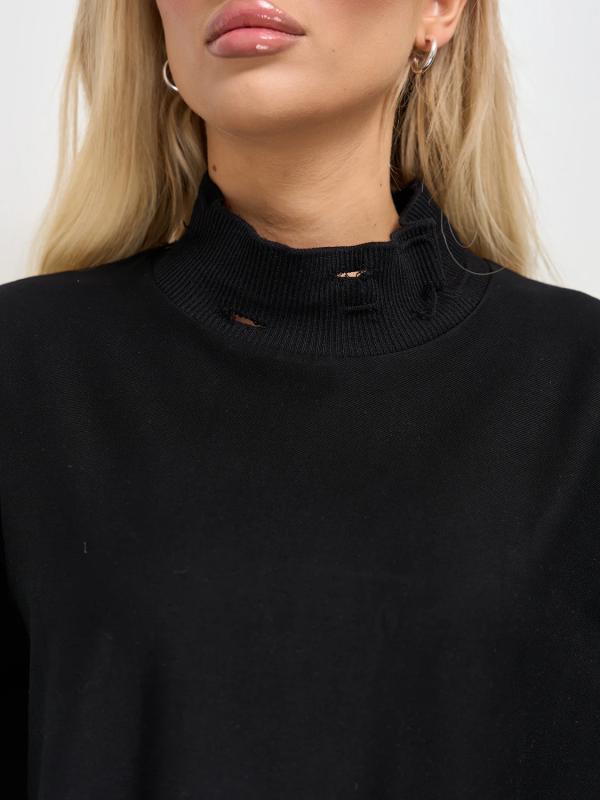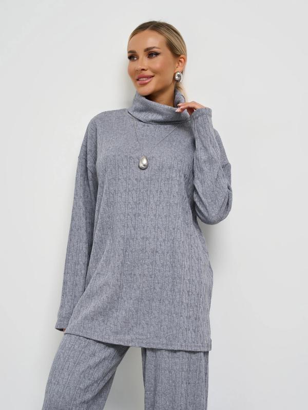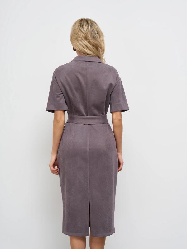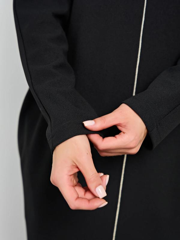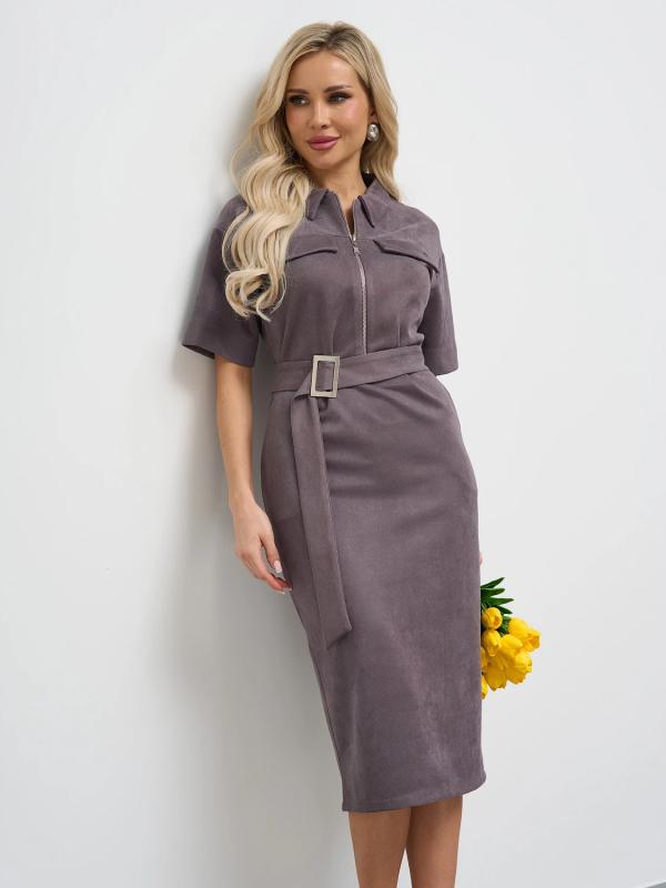 Мягкое трикотажное платье с воротником стойкой прямого кроя.