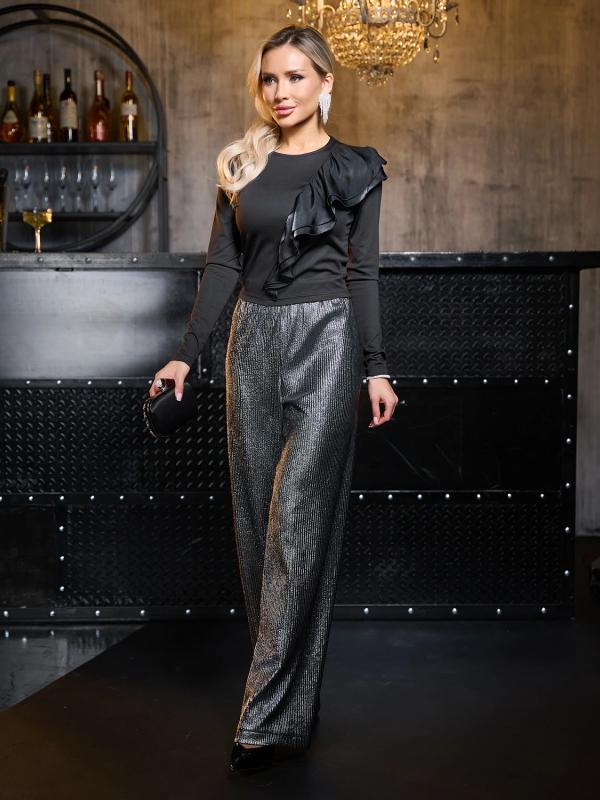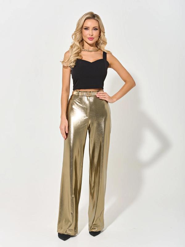 Широкие брюки из тонкой костюмной ткани с эффектом Crush.