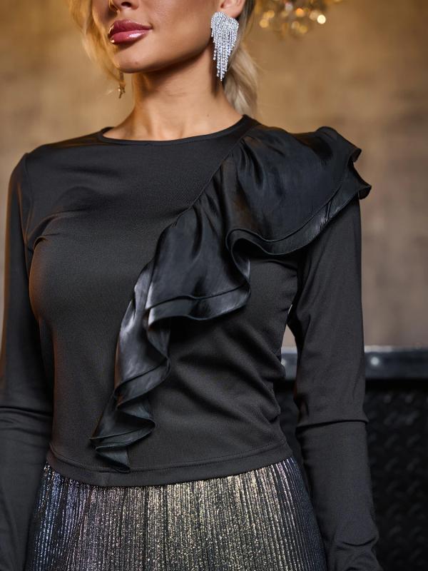 Блуза полуприлегающего силуэта выполнена из мягкой сетки.