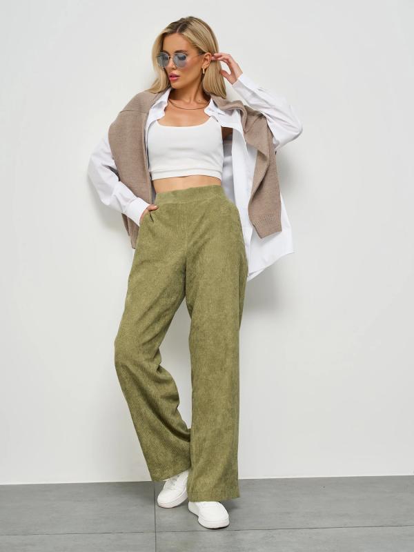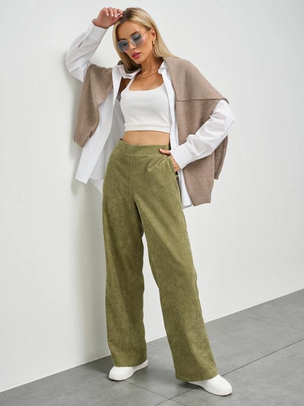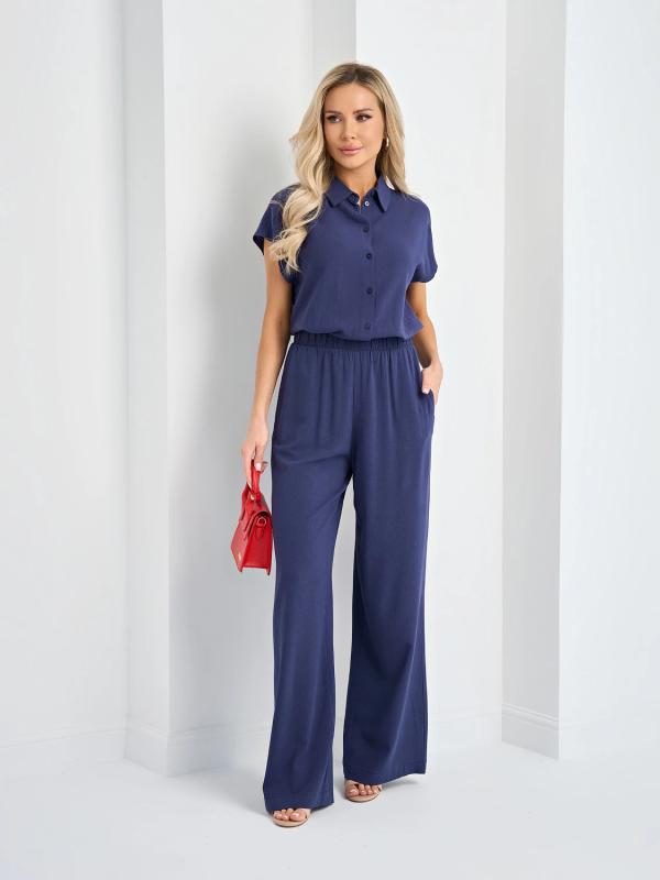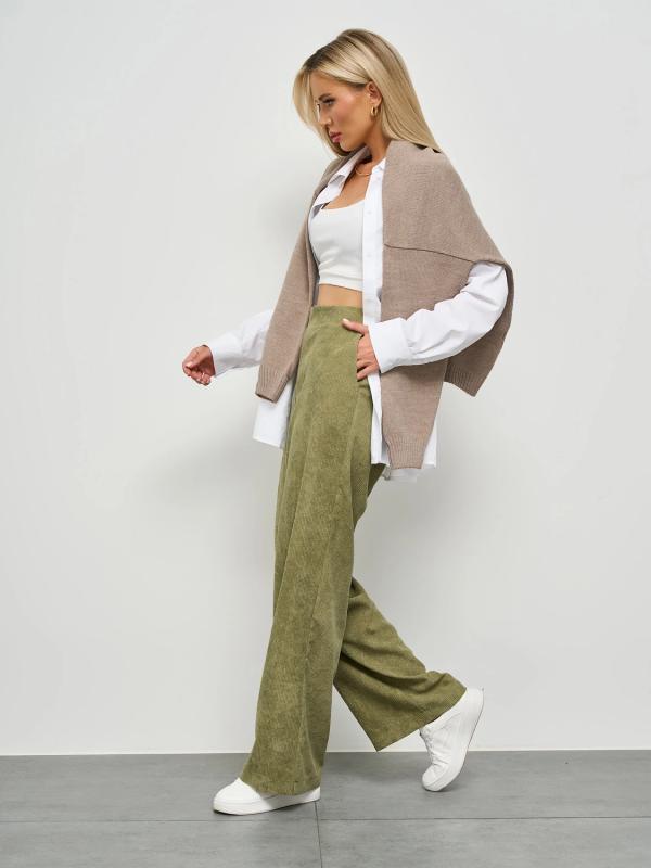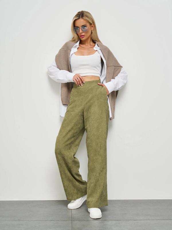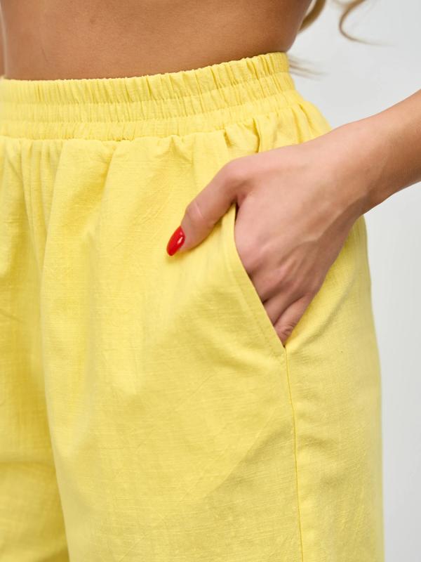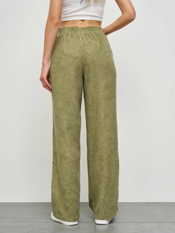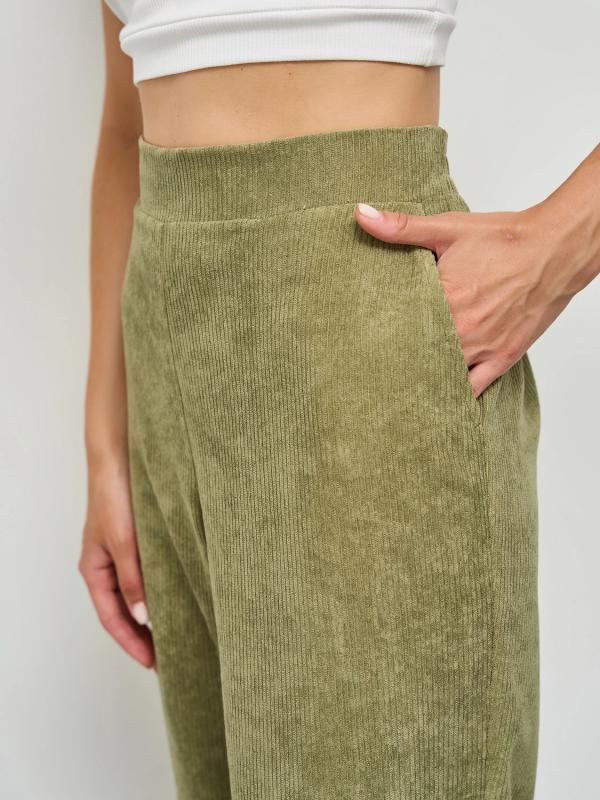 Прямые брюки с карманами. Сзади пояс на резинке.