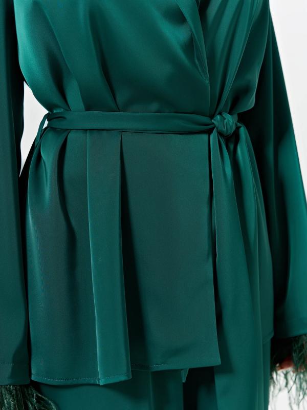 По переду изделия прорезные карманы с листочкой.