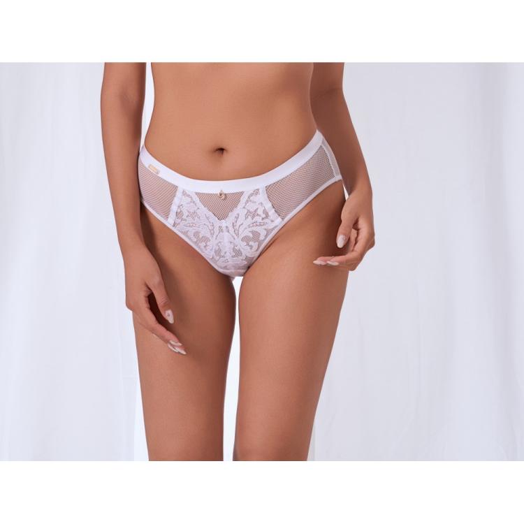 Трусы Lanny mode из гладкого кружева с сеточкой , высокая посадка , тонкие края : 6 штук в упаковке одного цвета разных размеров.