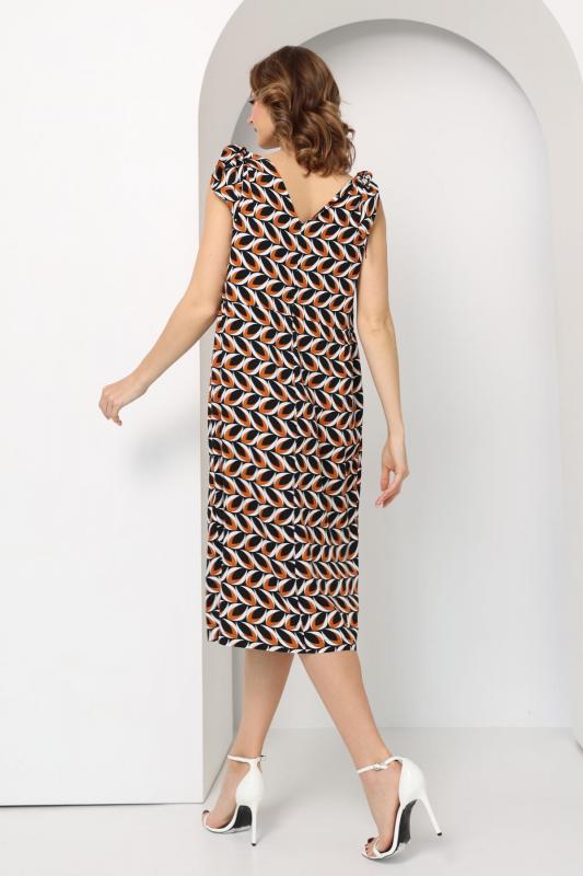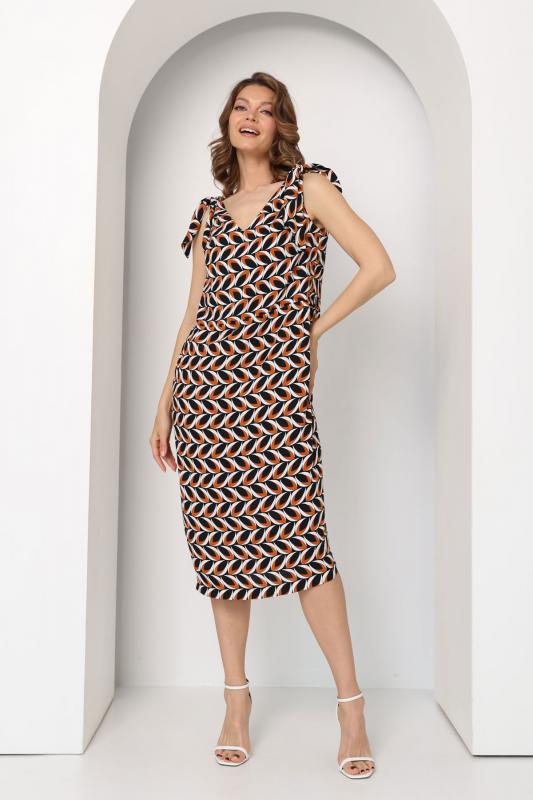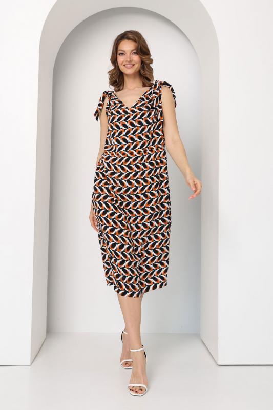 Платье-сарафан прямого кроя. V- образный вырез горловины. Длина миди. Лиф сарафана по плечам выполнен в виде завязок-бантов. Ткань: штапель вискоза. Обмеры готовых изделий: Длина изделия: 112 см (42р), 112,5 см (44р), 113 см (46р), 113,5 см (48р), 114 см (50р), 114,5 см (52р), 115 см (54р) Обмер изделия по груди: 90 см (42р), 94 см (44р), 98 см (46р), 102 см (48р), 106 см (50р), 110 см (52р), 114 см (54р) Обмер изделия по талии: 92 см (42р), 96 см (44р), 100 см (46р), 104 см (48р), 108 см (50р), 112 см (52р), 116 см (54р) Обмер изделия по бедрам: 100-106 см (42р), 104-110 см (44р), 108-114 см (46р), 112-118 см (48р) 116-122 см (50р), 120-126 см (52р), 124-130 см (54р) Параметры модели: 175 см, грудь 86 см, талия 66 см, бедра 96 см. На модели размер 44. Сделано в России.